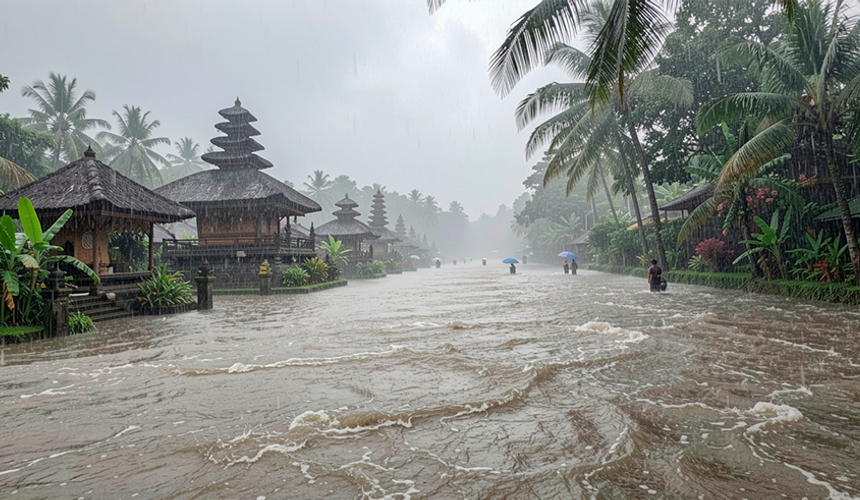На Бали сохраняется красный (максимальный) уровень опасности: умеренные и сильные осадки прогнозируются сегодня ночью и завтра. Наибольшая возможность наводнений отмечается в Денпасаре и таких туристических районах как Бадунг, Гианьяр, Клунгкунг и Карангасем.