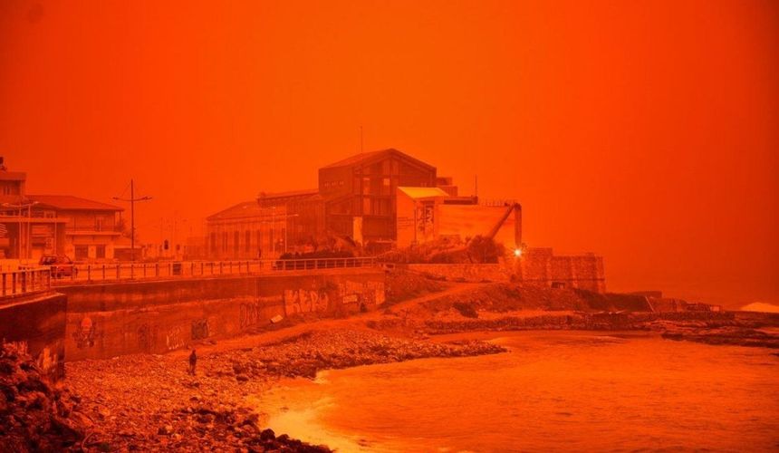 Жители и туристы в Аланье и Анталье – курортных регионов Турции – сегодня наблюдают впечатляющее природное явление: небо окрасилось в ярко-красный цвет из-за пылевой бури из Северной Африки.